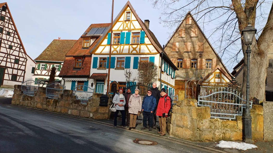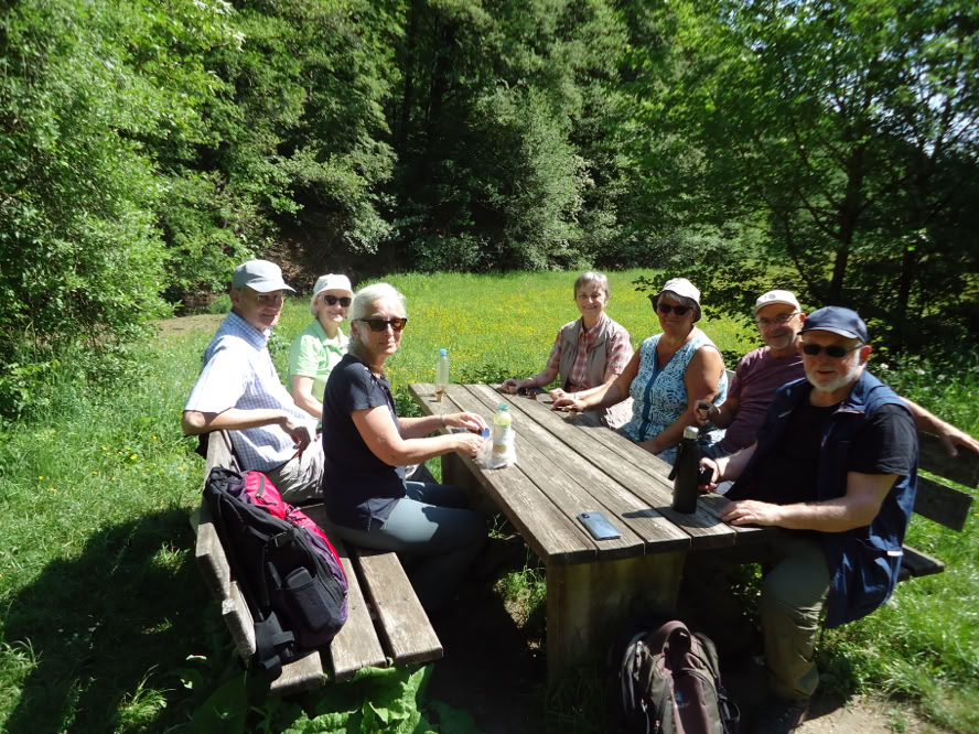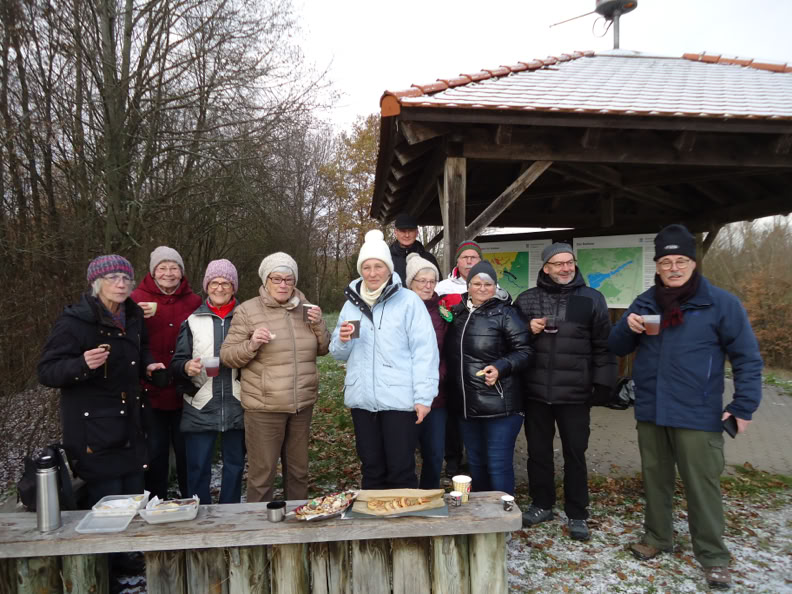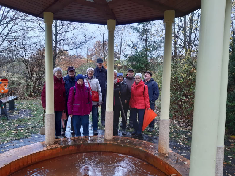 Bei trübem Schauerwetter fuhren wir zu unserem Wanderstart nach Gebersdorf. Mit Regenschirm starteten wir am Rednitzufer unsere Wanderung. Bald erreichten wir die Gustav-Adolf-Quelle, im Sprachgebrauch wegen des Schwefelgehalts „Gaggerlas-Quelle“ genannt. Überraschend hörte hier der Regen auf und die ersten Sonnenstrahlen erwärmten uns. Wir durchquerten Weikershof und erreichten den Main-Donau-Kanal. Nach einem kurzen Stück ging es wieder in den Wiesengrund und entlang der Bibert liefen wir auf sumpfigen Wegen zu unserem Mittagsziel, der Sportgaststätte mit Kegelbahn in Gebersdorf. Nach gutem fränkischem Mittagessen machten wir noch eine einstündige Runde durch den Hainberg und beschlossen die Wanderung mit Kaffee und Kuchen. Alle waren zufrieden, nachdem auch das Wetter besser war als angekündigt.